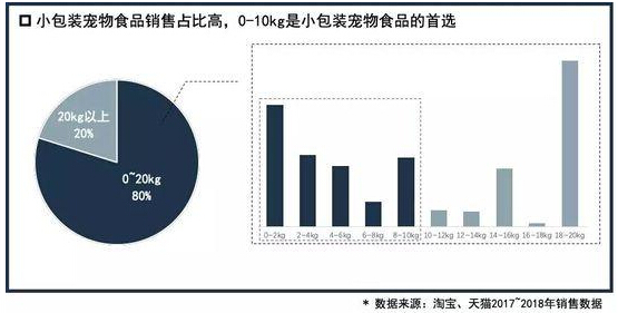 2018年小包装宠物食品销售额较2016年增长688%,且年轻消费者对小包装商品偏好更高,重量在0~20kg范围内的宠物食品销售额占比80%,其中0~10kg的小包装宠物食品是首选。基于此,品牌可以迅速响应,推出小包装新品将有效带动销售、新客双增长。