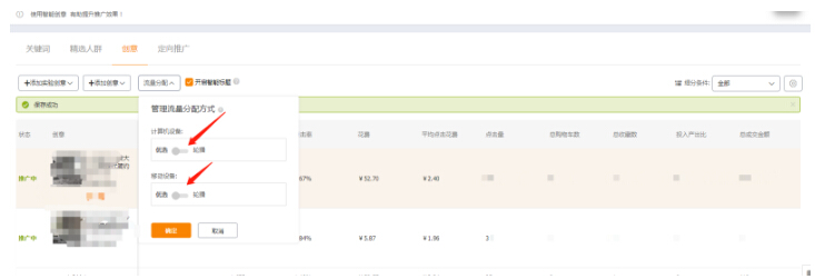 3、流量分配,记住一定要选择轮播,因为你选择了优选,系统会优先展示点击率高的,所以要选择轮播!