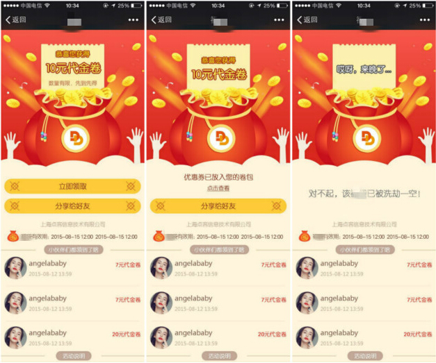 那么BCD呢,他们也有劵吗?也有,只不过是你所设置的子劵,也就是被分享者劵,一般来说子劵会比父劵金额少一些(打个比方是100-10),如果BCD在看到A所获取到的父劵之后,发现还有大额的父劵是可以去领的,那么他们就可能会再次发起一次分享。